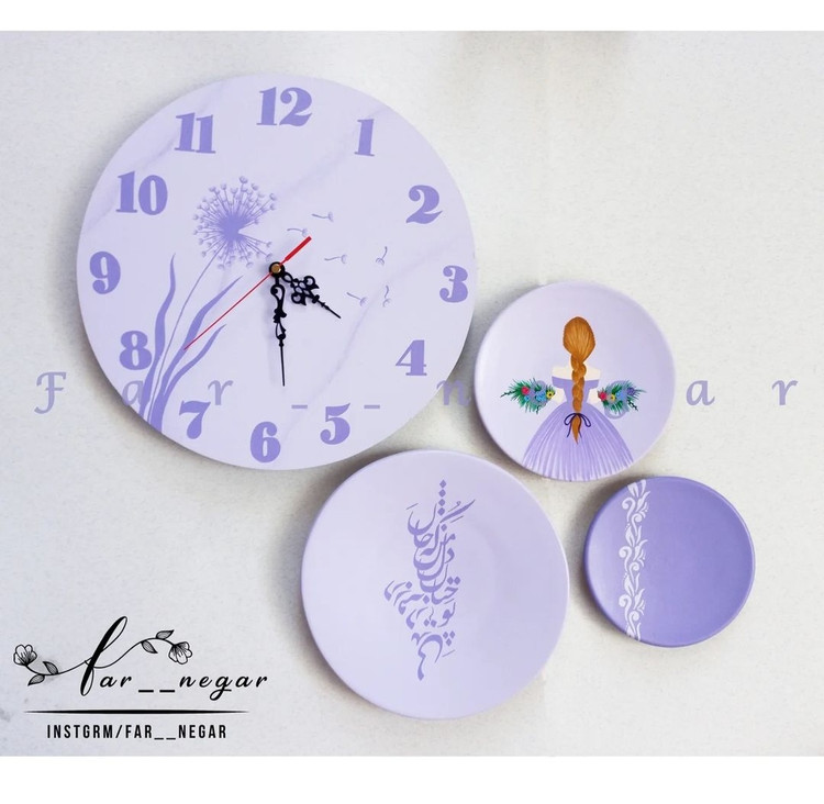 ست ساعت دیواری دیوار کوب دخترونه بنفش