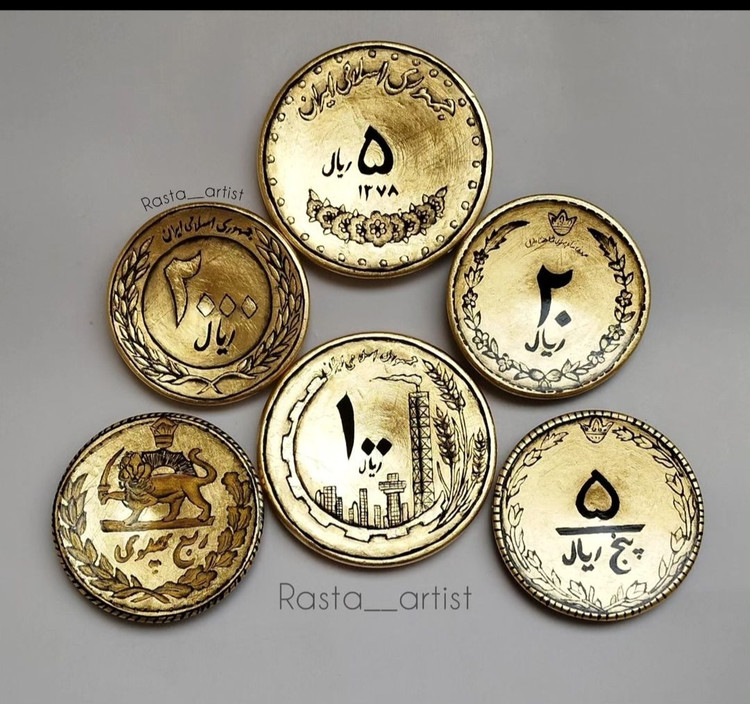 ست دیوار کوب سکه قدیمی پهلوی رضا شاه سفالی ورق طلا