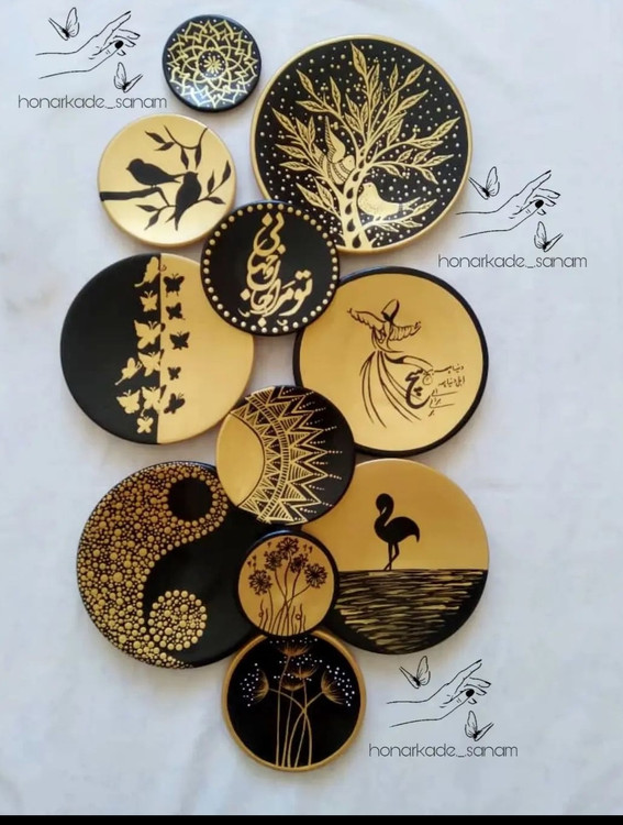 جنس سفال سایز ۲۰ ۱۵ ۱۰ قطر بشقاب قابل شست وشو قابل نصب به دیوار: 11 تیکه