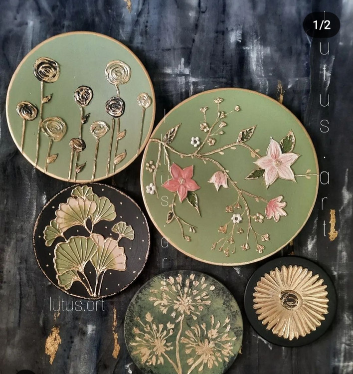 ست دیوار کوب برجسته گل برگ ورق طلا تم سبز