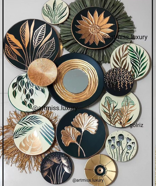 ست ۱۵ عددی دیوار کوب سبز لجنی کرمی گل برجسته طلایی