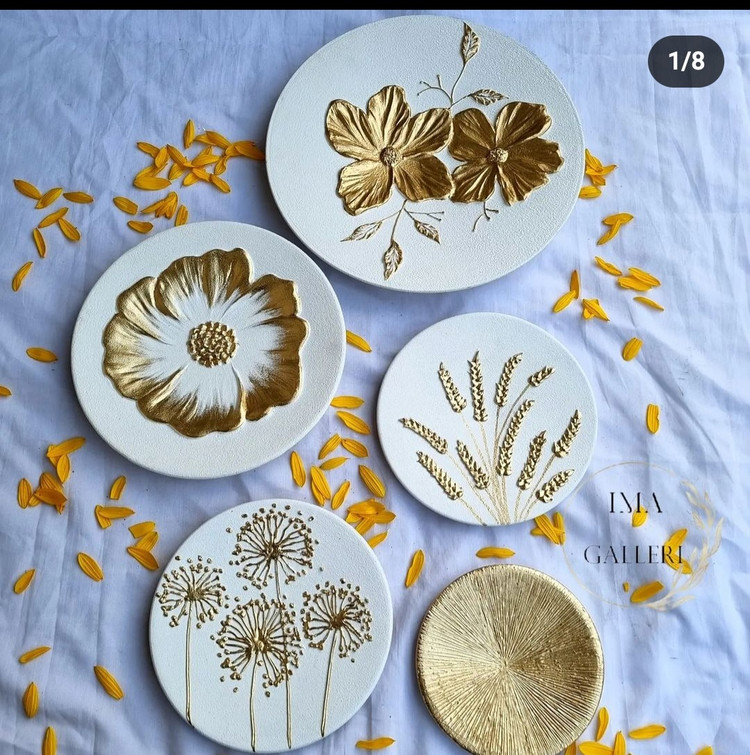 ست بشقاب دیواری زمینه سفید گل طلایی گندم