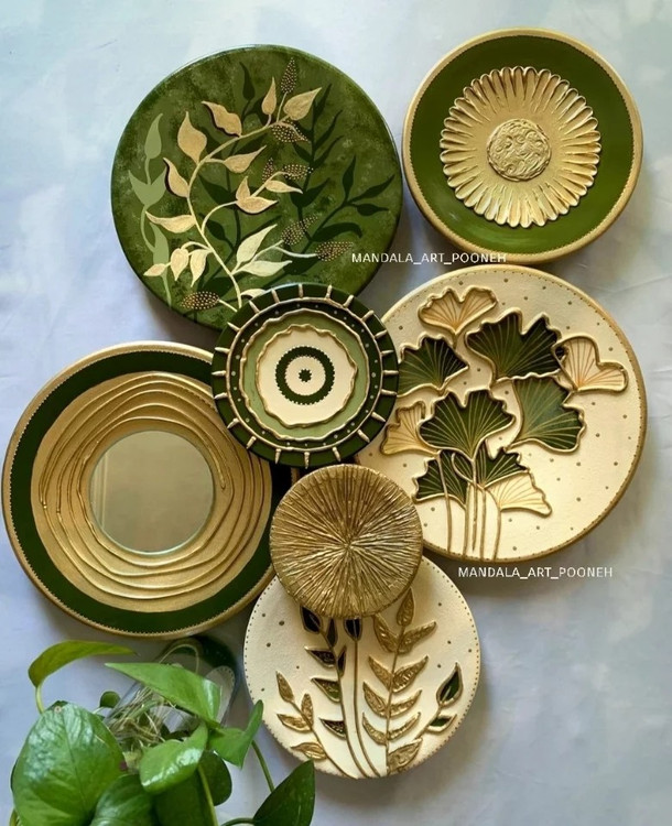 ست دیوار کوب سبز پسته ای وکرمی طلایی برجسته کاری طرح گل وبرگ
