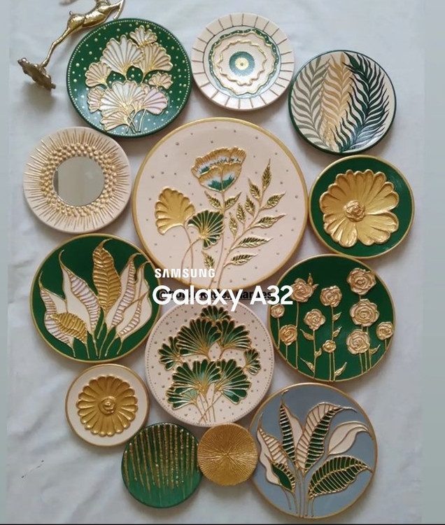 ست۱۳ تیکه دیوار کوب برجسته زمینه گلبهی کرم سبز طرح برگ گل آینه
