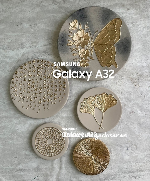 ست دیوار کوب نسکافه ای کرم توسی برجسته طرح پروانه برگ طلایی