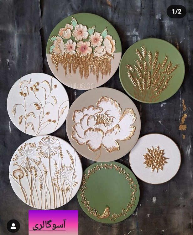 ست دیوار کوب برجسته سبز وسفید طرح گل برجسته ورق طلا