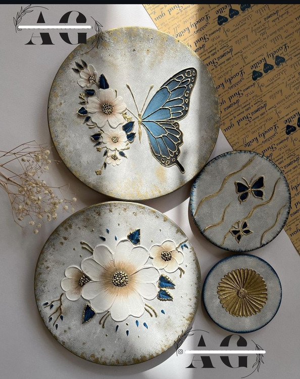 ست دیوار کوب پتینه ای طرح برجسته پروانه گل توسی ابی طلایی