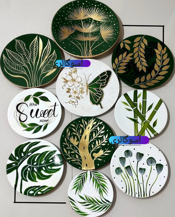 ست دیوار کوب سبزو سفید طلایی طرح برگ گل پروانه