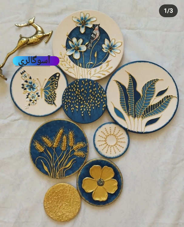 ست دیوار کوب سرمه ای ابی کرم طرح برجسته پرنده وگل گندم