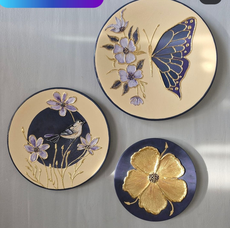 ست دیوار کوب کرمی بنفش یاسی برجسته طرح پرنده گل
