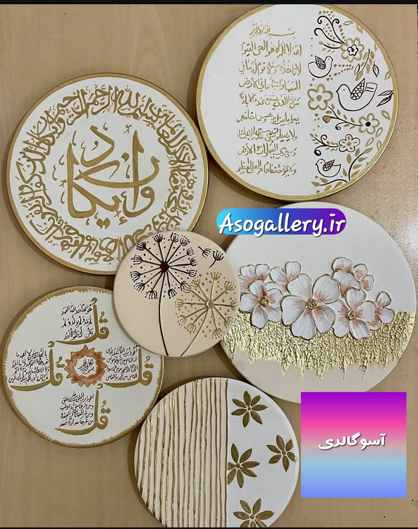 ست دیوار کوب طلایی سفید انیکاد گل برجسته چهار قل آیت کرسی