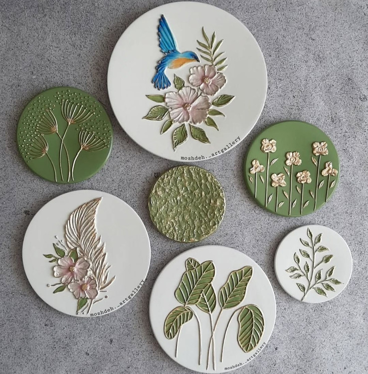 ست دیوار کوب سبز برجسته طرح پرنده گل برجسته